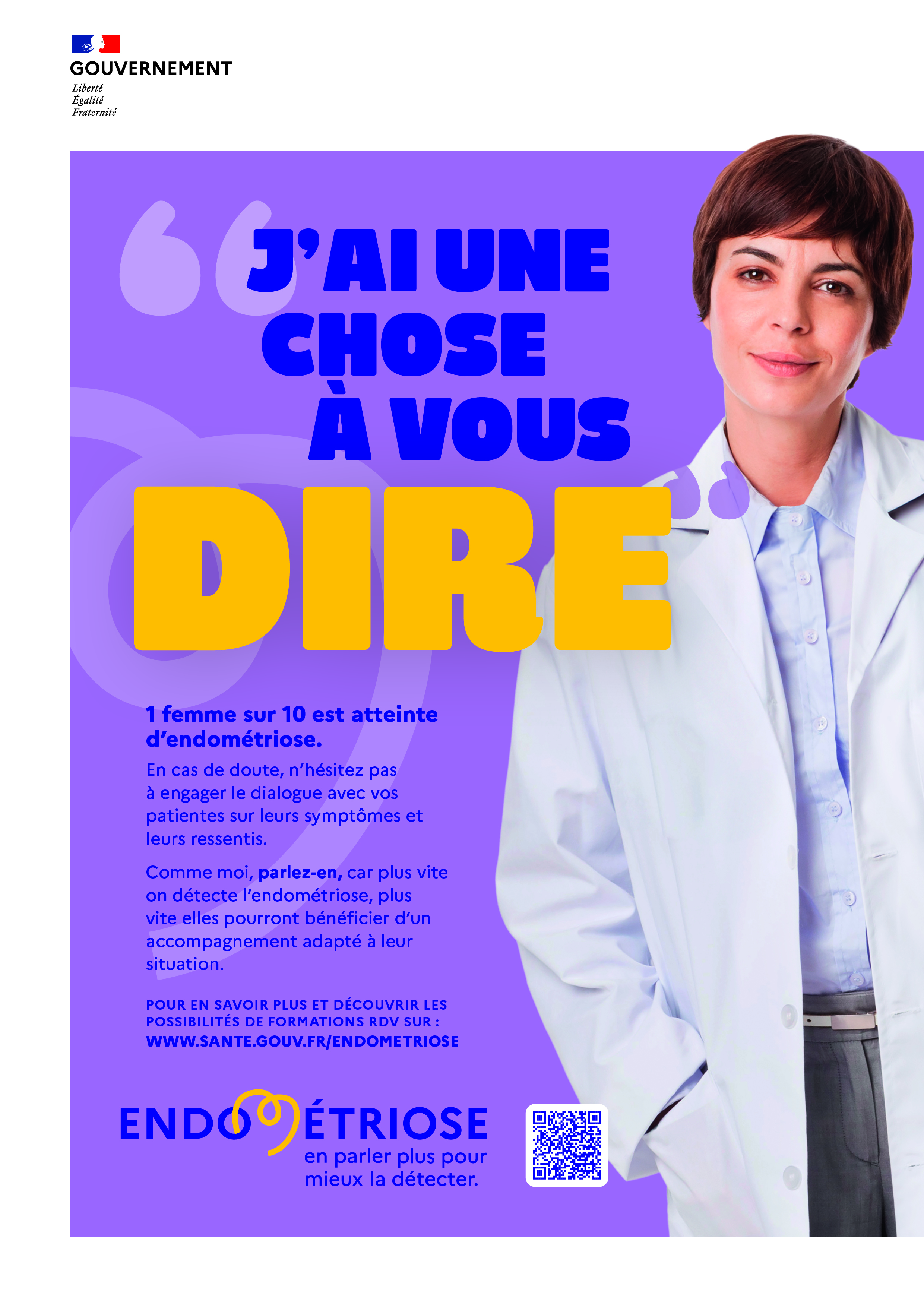 Afin de permettre un diagnostic plus précoce de la maladie, la campagne média ciblera d’une part le grand public, en renvoyant vers le site Santé.fr qui dispose de nombreuses informations (symptômes, diagnostic et examen, traitements, comment vivre avec la maladie, droits des patients). D’autre part, la campagne s’adressera également aux professionnels de santé afin de les inciter à s’informer, se former à cette pathologie, ainsi qu’à rejoindre les filières régionales dédiées à l’endométriose vers lesquelles les personnes doivent être orientées en cas d’éventuelle suspicion d’endométriose pour un diagnostic et une prise en charge adaptée.