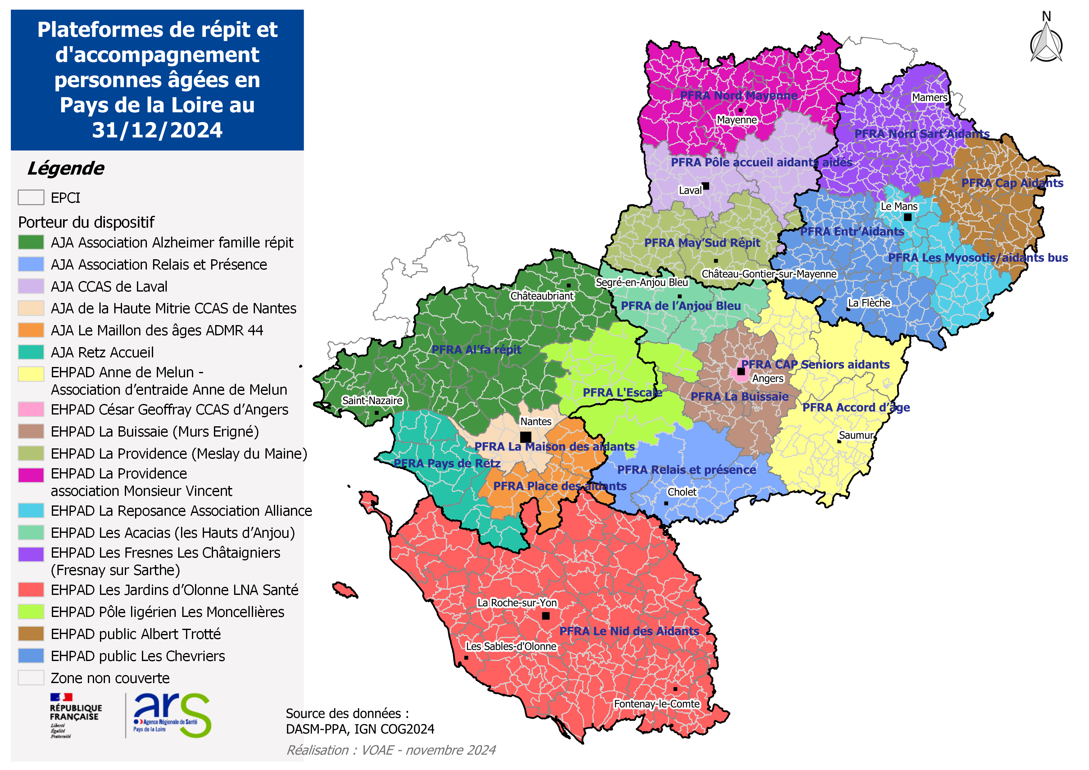 | Maine-et-Loire | EHPAD LES MONCELLIERES "PFRA L'escale les Moncellières" | L'escale les Moncellières | Le Pôle Ligerien les Moncellières / Résidence Les Moncellières / Résidence Les Rives de l'Auxence | |