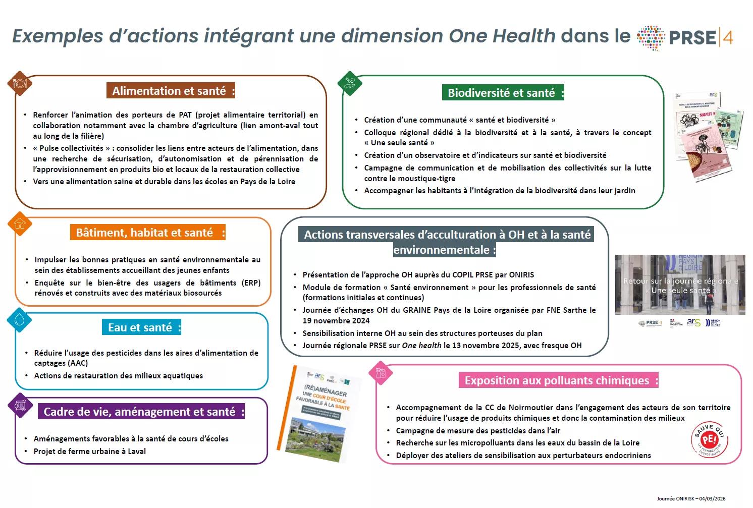 Exemples d'actions intégrant une dimension one health (OH) dans le PRSE4 Pays de la Loire :